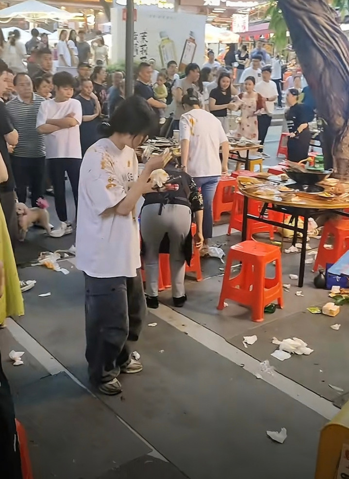 顾客被溅到火锅热油。图/视频截图